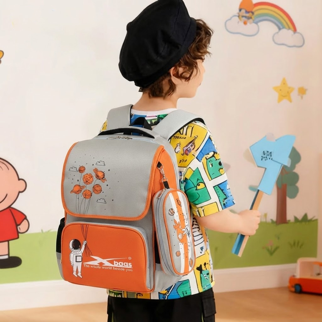 Sản phẩm được thiết kế đặc biệt sáng tạo với hình ảnh phi hành gia ấn tượng, tạo cảm giác mới lạ và thu hút sự chú ý của bé. Cùng tone màu xám cam nổi bật, khiến cho balo lúc nào cũng tươi mới, mang đến phong cách cá tính, năng động.