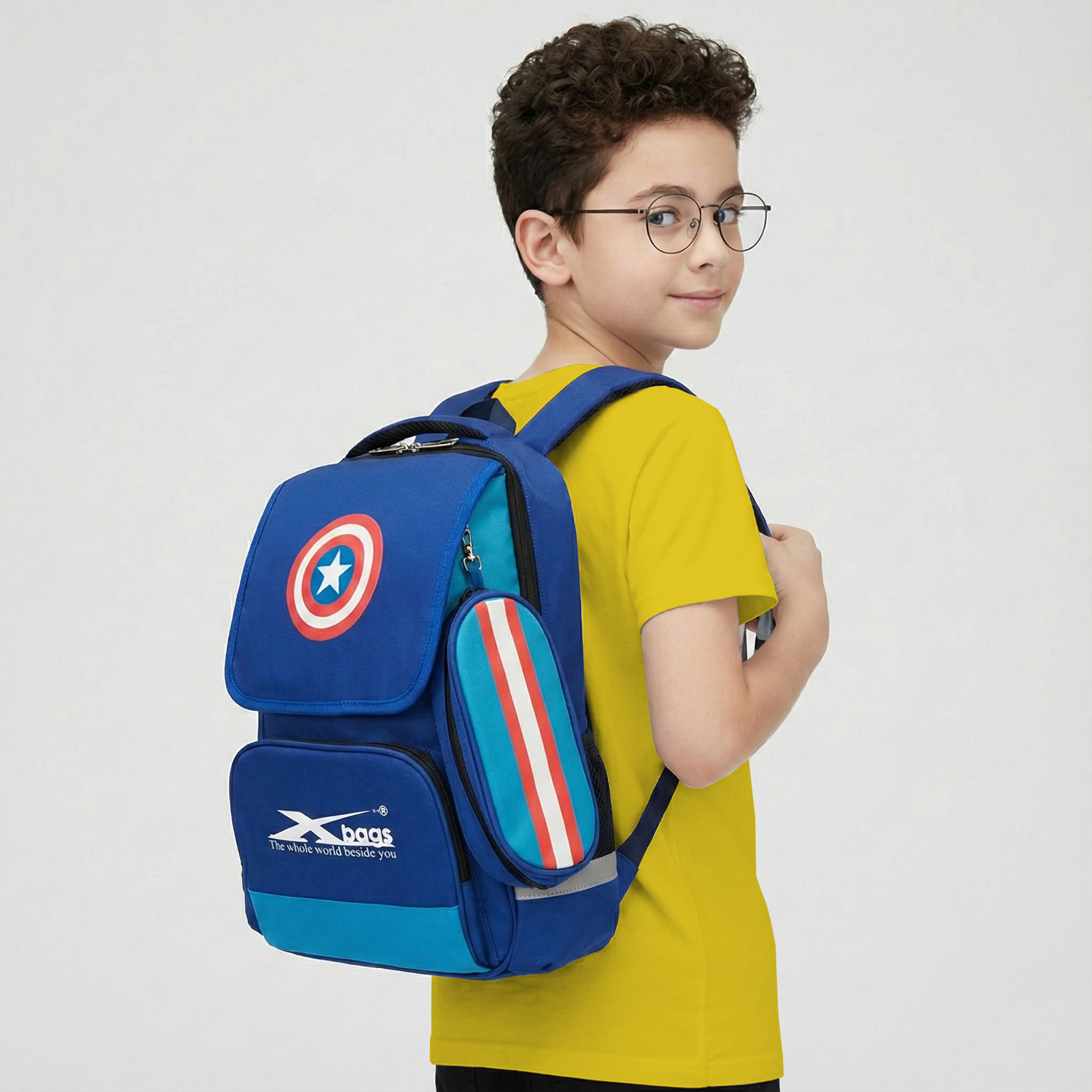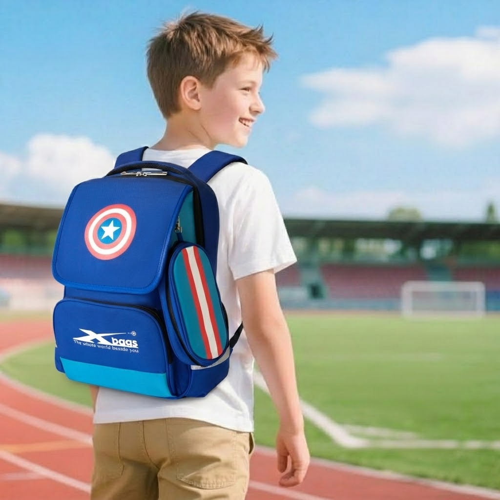 Mặt nghiêng của balo học sinh cho nam cấp 1 Xbags Power Xb 3017