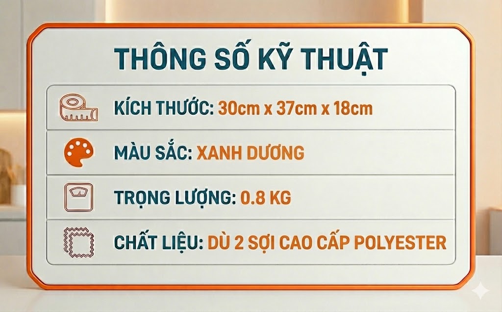 + Vải chính: Dù 2 sợi cao cấp (Polyester)