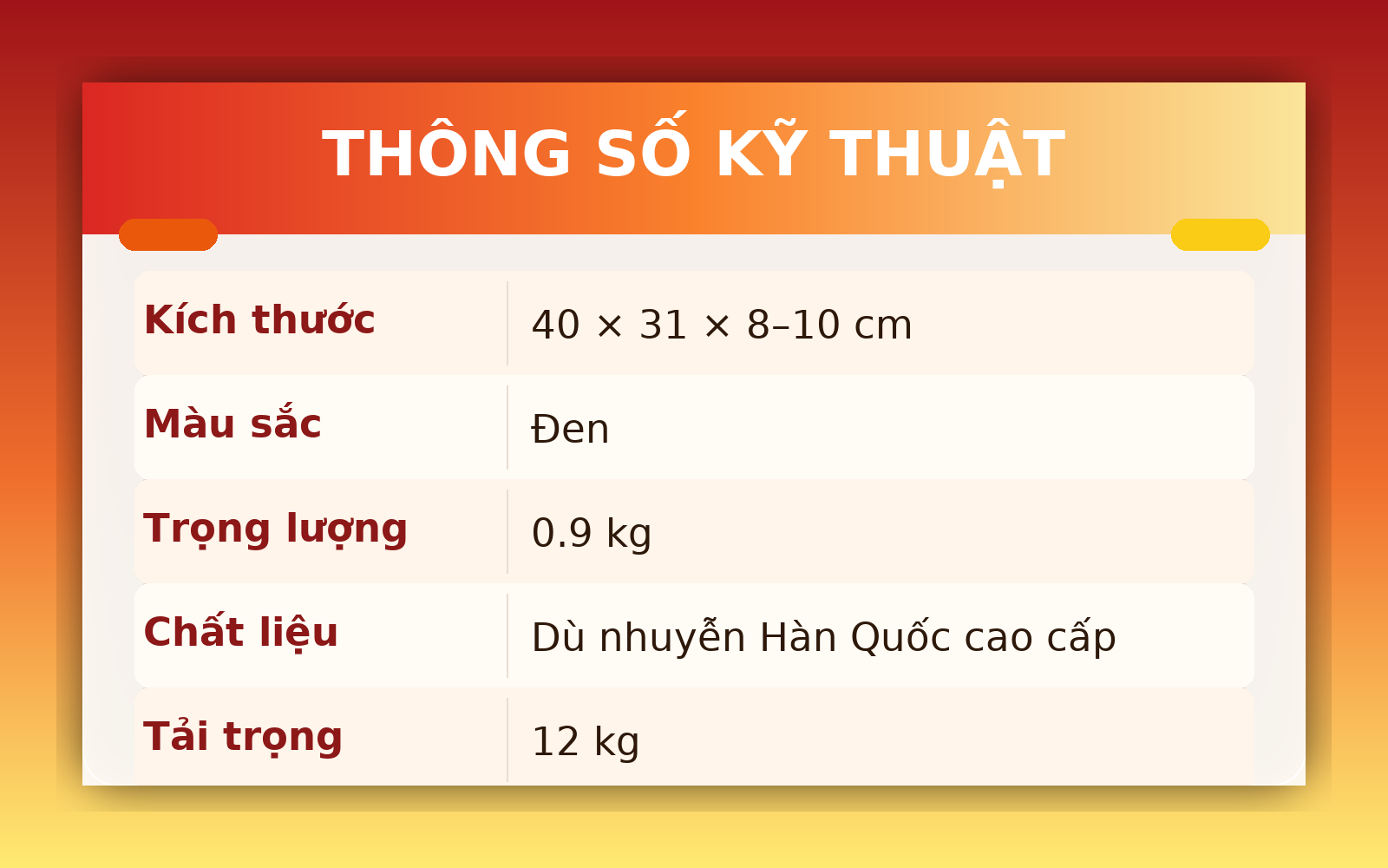 Nhờ đặc tính chống thấm hiệu quả, sản phẩm mang lại sự an tâm khi gặp mưa nhẹ hoặc môi trường ẩm ướt, bảo vệ toàn diện laptop, tài liệu và các thiết bị công nghệ bên trong. Chất liệu này cũng hạn chế bám bụi, dễ dàng vệ sinh chỉ với khăn ẩm, giúp cặp luôn giữ được vẻ ngoài sạch sẽ, chuyên nghiệp và bền đẹp theo thời gian.