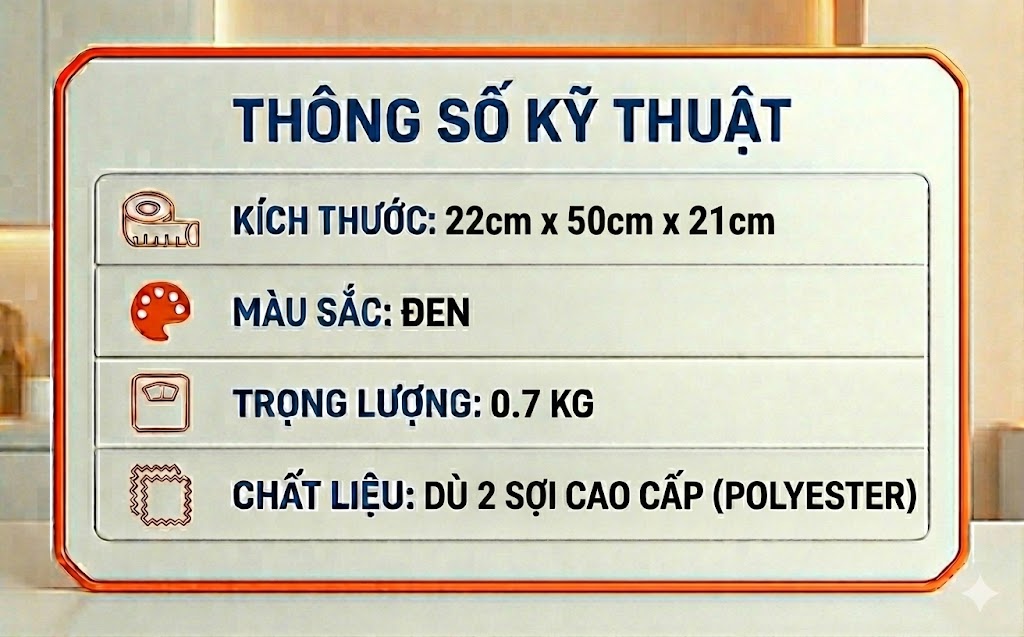 + Vải chính: Dù 2 sợi cao cấp (Polyester)