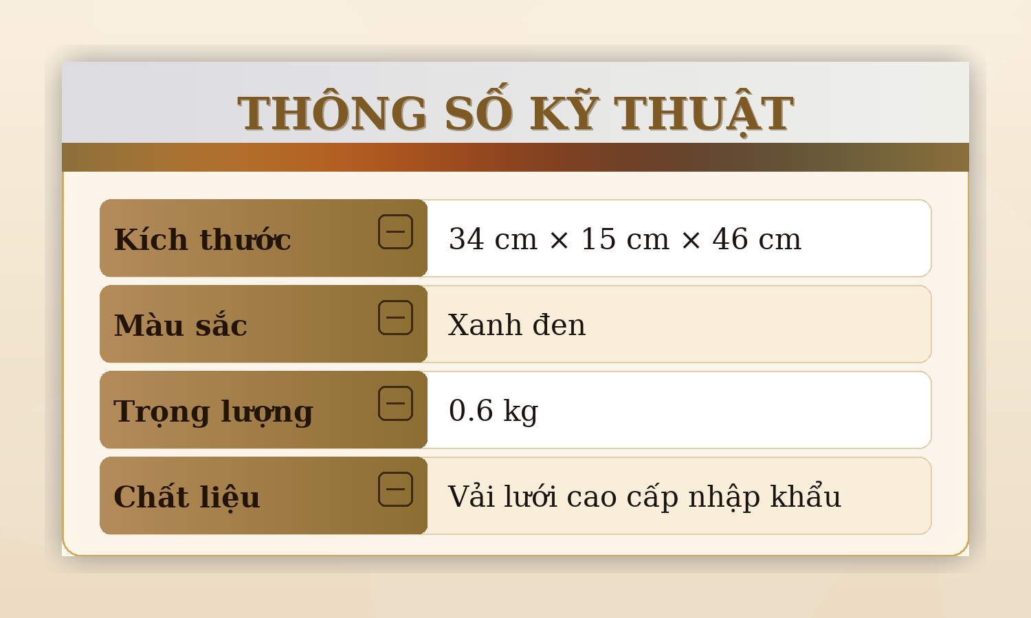 Không nên để sản phẩm tiếp xúc lâu với ánh nắng mặt trời; hạn chế để nước bắn vào, không bao giờ được rửa sạch bằng nước; không để balo vào những chỗ sắc nhọn và tuyệt đối tránh xa các hóa chất, dung môi.