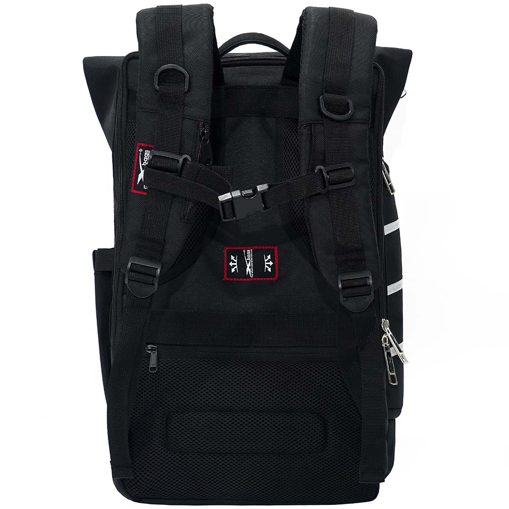 Mặt lưng balo được trang bị lớp đệm êm ái kết hợp lưới thoáng khí, giúp hạn chế tích tụ mồ hôi khi đeo lâu. Thiết kế dây đai ngang thông minh cho phép gài balo vào vali, mang lại sự tiện lợi khi di chuyển. Quai đeo và mặt lưng lót mút foam dày dặn và đàn hồi tốt, giúp phân tán lực, giảm áp lực lên vai ngay cả khi mang nhiều đồ.