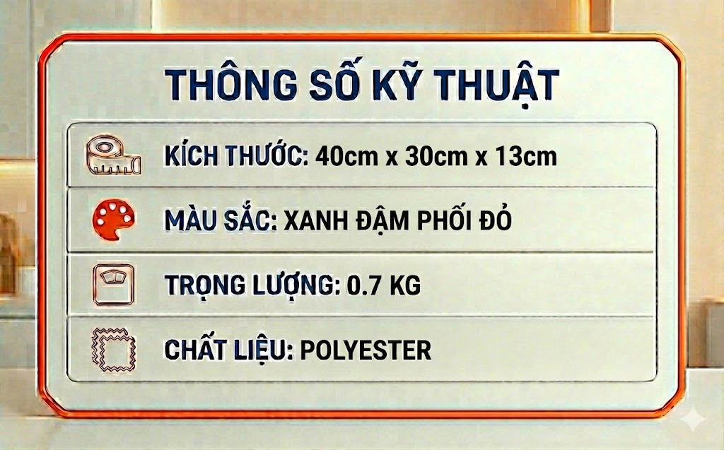 + Vải chính: Dù 2 sợi cao cấp (Polyester)