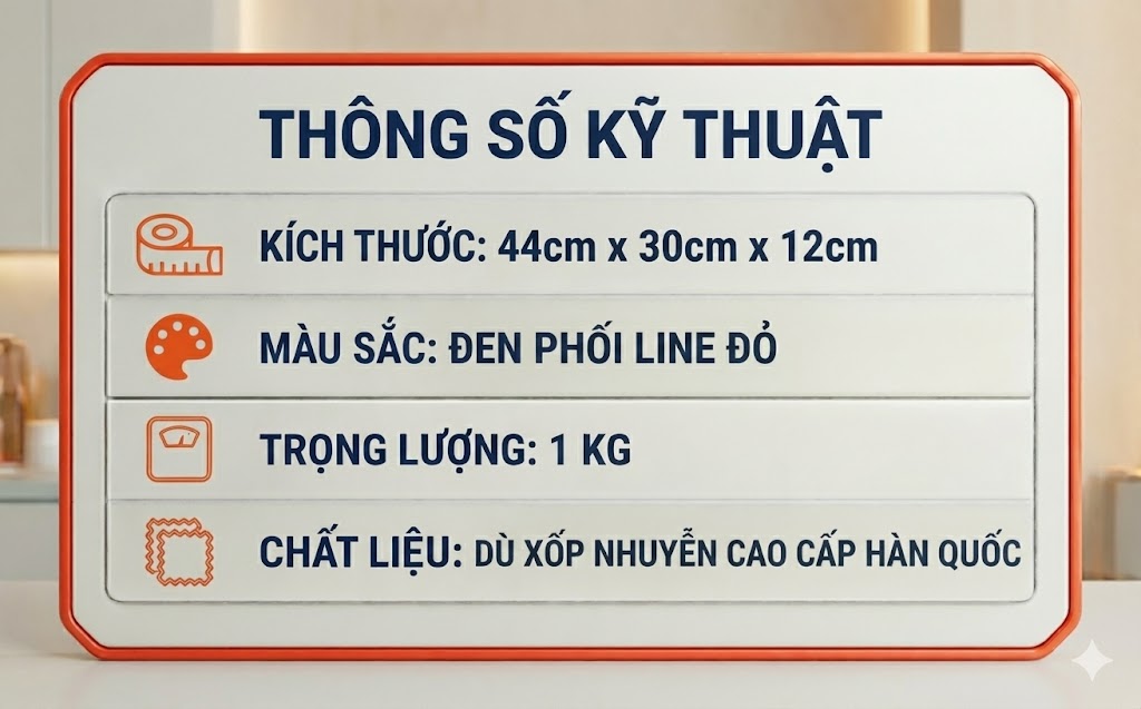 Tông màu đen chủ đạo kết hợp đường chỉ đỏ tạo nên vẻ ngoài ấn tượng, phong cách thể thao nhưng vẫn giữ nét sang trọng. Sự phối hợp màu sắc này không chỉ tạo điểm nhấn thẩm mỹ mà còn giúp balo dễ dàng kết hợp với đa dạng trang phục.